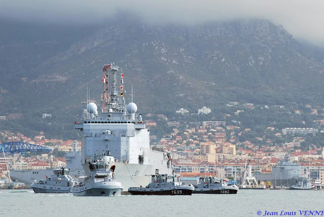 Voici des images du retour à Toulon du TCD Foudre, avec le déradiage des CTM, les bateaux de la flottille amphibie.