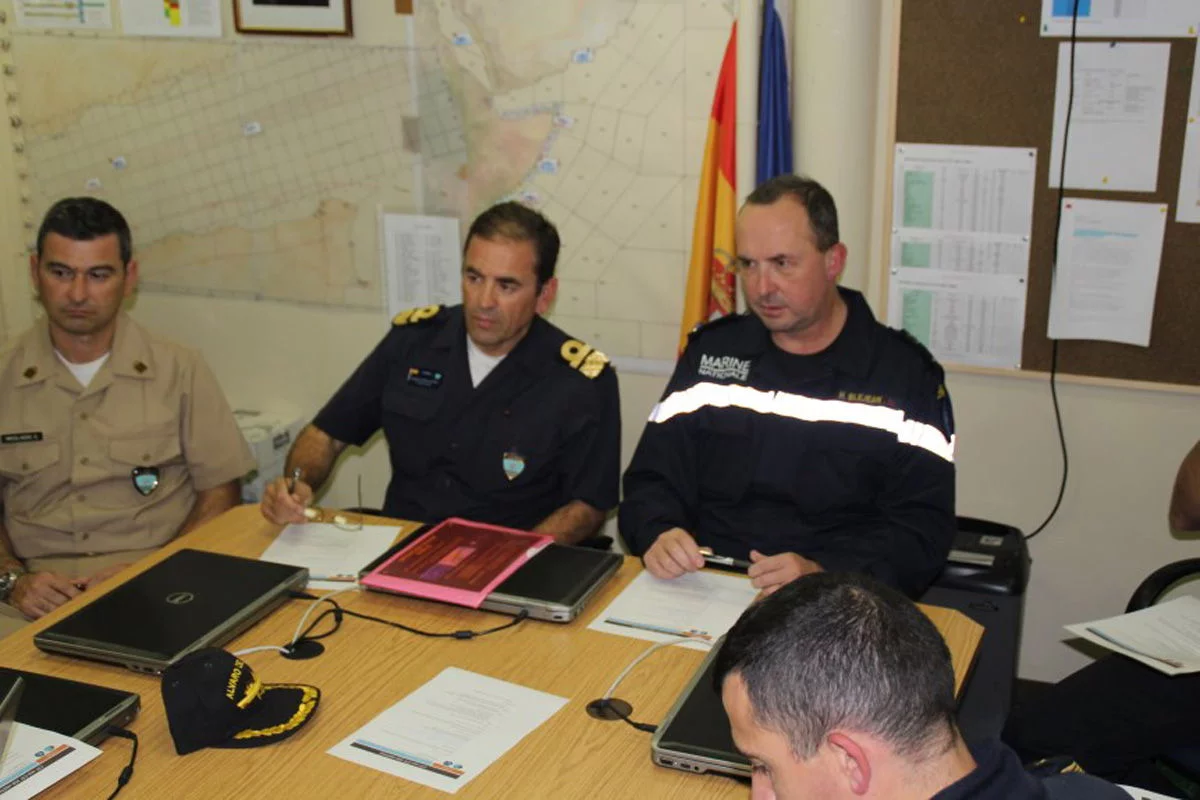 Quelques jours après avoir pris leurs fonctions, le commandant de l’opération européenne Atalante luttant contre la piraterie en océan Indien, le contre-amiral Hervé Bléjean de la marine nationale, et son homologue pour l’opération Ocean Shield de l’OTAN, le contre-amiral Eugenio Diaz del Rio, se sont rencontrés à bord du navire-amiral de la task-force 508, la frégate espagnole Alvaro de Bazan.
