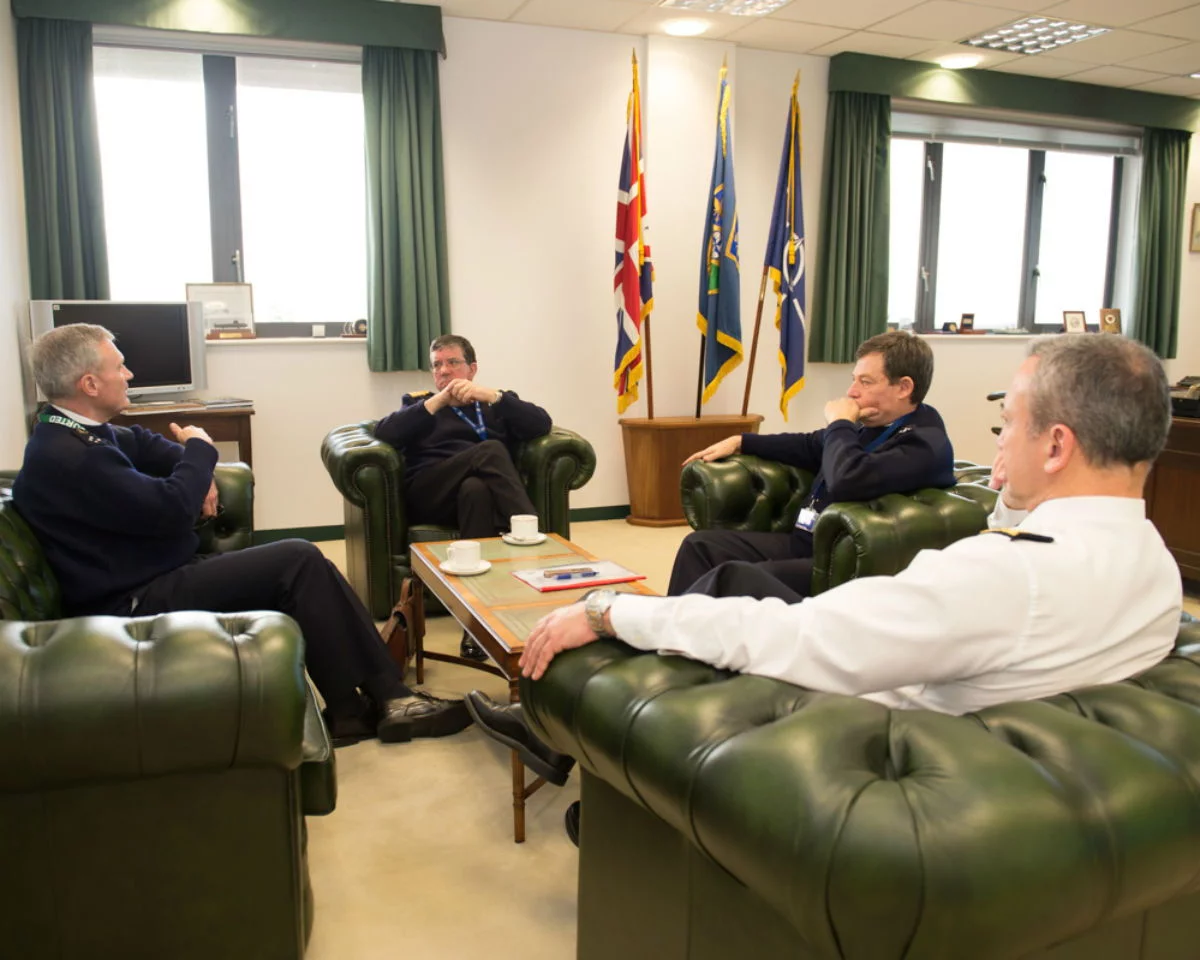 C’était une occasion pour le vice-amiral d’escadre de Coriolis, dont la précédente affectation était attaché de défense à Londres, de discuter des nouvelles responsabilités échues au MARCOM et au COMSUBNATO depuis la transition à un seul commandement maritime au début 2012. Au cours de sa visite, il a rencontré le commandant du MARCOM, le vice-amiral Peter Hudson, et son adjoint, le vice-amiral d’escadre Christian Canova, pour discuter de la participation des sous-marins et des équipements de sauvetage de la marine nationale aux opérations et exercices de l’OTAN.