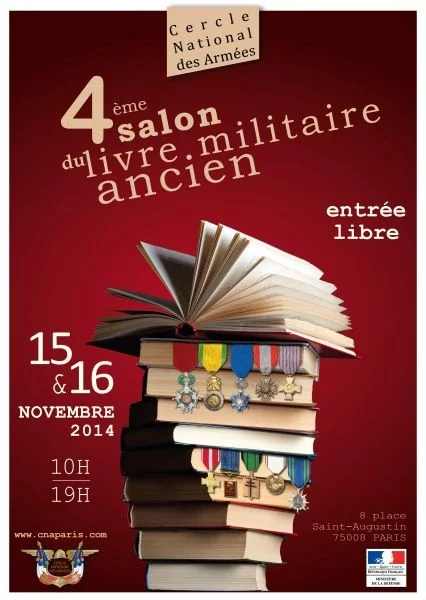 Les 15 et 16 novembre 2014, dans la salle des fêtes du prestigieux Cercle National des Armées - 8, place Saint-Augustin à Paris (8ème) - aura lieu la 4ème édition du salon du livre militaire ancien.