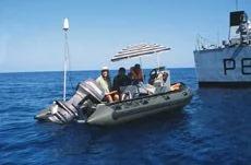 Le canot pneumatique de la Royale avait été spécialement aménagé et équipé pour la mission de la MOP.