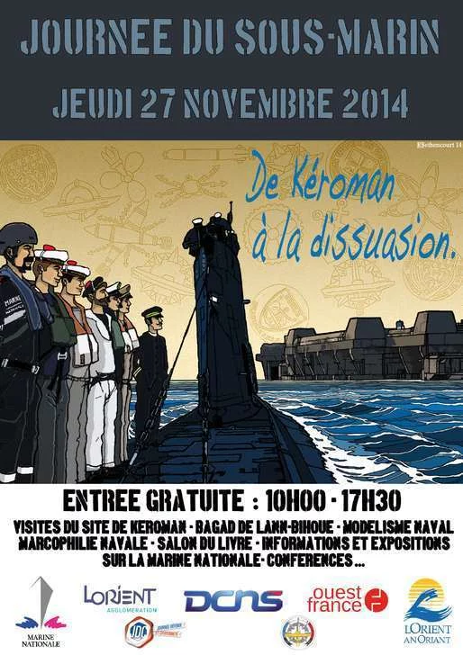 La journée nationale du sous-marin se tiendra le 27 novembre 2014 à Lorient, sur le site de la base de Kéroman, un lieu symbolique pour les Forces Sous-Marines (FSM) françaises. La plupart des enseignements techniques et stratégiques, qui ont permis à la France de se doter d’une force sous-marine moderne, sont nés et ont été développés à Lorient même.