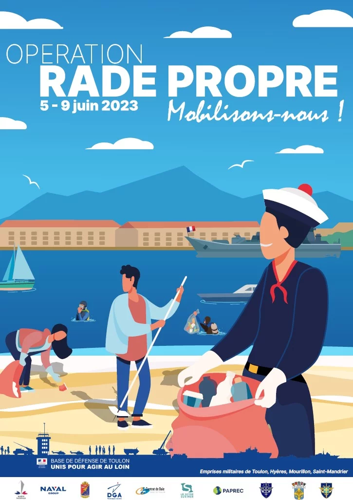 Lancement aujourd’hui de l’opération #RadePropre2023, grande campagne de nettoyage organisée par la base de Défense sur plusieurs sites de la rade de la ville de Toulon en coordination avec de nombreux partenaires institutionnels et privés.