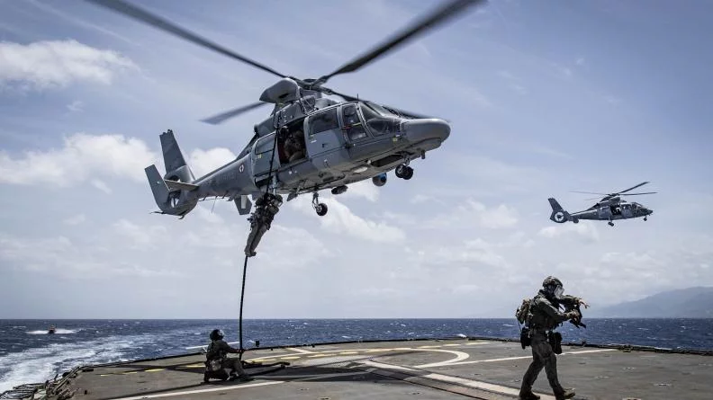 Exercice Spectre 2025 : renforcer l’interopérabilité entre les hélicoptères Caïman Marine et une équipe spécialisée d’intervention maritime (ESIM) de fusiliers marins