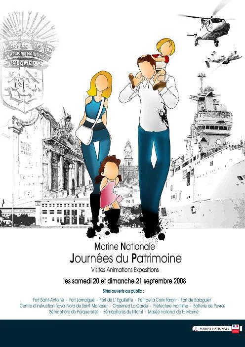Créées en 1984 par le Ministère de la culture, les Journées européennes du patrimoine ont lieu, tous les ans, le troisième week-end de septembre. Certains sites de la marine nationale pourront exceptionnellement être visités en cette occasion.