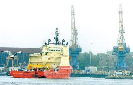 Le navire de soutien USNS Carolyn Chouest est arrivé vendredi au chantier Portsmouth Naval Shipyard avec le NR-1 Ã bord.
