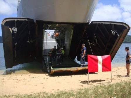 Après une période d’entretien de 6 semaines, l’équipage du Jacques Cartier, fraichement renouvelé, avait besoin de retrouver ses marques. Pour cela, rien de tel qu’une mission opérationnelle au Vanuatu. Le bâtiment est donc parti en direction de Port Vila avec à son bord une section de 35 hommes de l’armée de terre (RIMAP). L’objectif principal de cette mission était le débarquement de troupes et de matériel afin de restaurer le lycée français de Luganville, une escale de représentation a de plus été organisée à Port Vila à la demande de l’ambassade de France au Vanuatu.
