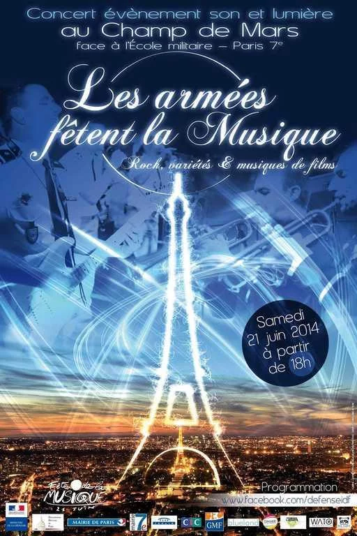 Organisée par le Gouverneur militaire de Paris, l’édition 2014 de l’opération Les armées fêtent la Musique s’installe cette année pour un concert évènement son et lumière, sur l’esplanade Joffre, le 21 juin 2014 à partir de 18 heures.