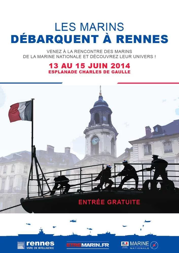 Après " La marine fait escale à Cahors" (mai 2011), " La marine fait escale à Nancy" (avril 2012) et " La marine fait escale à Besançon" (avril 2013), les marins débarquent à Rennes du 13 au 15 juin 2014 !