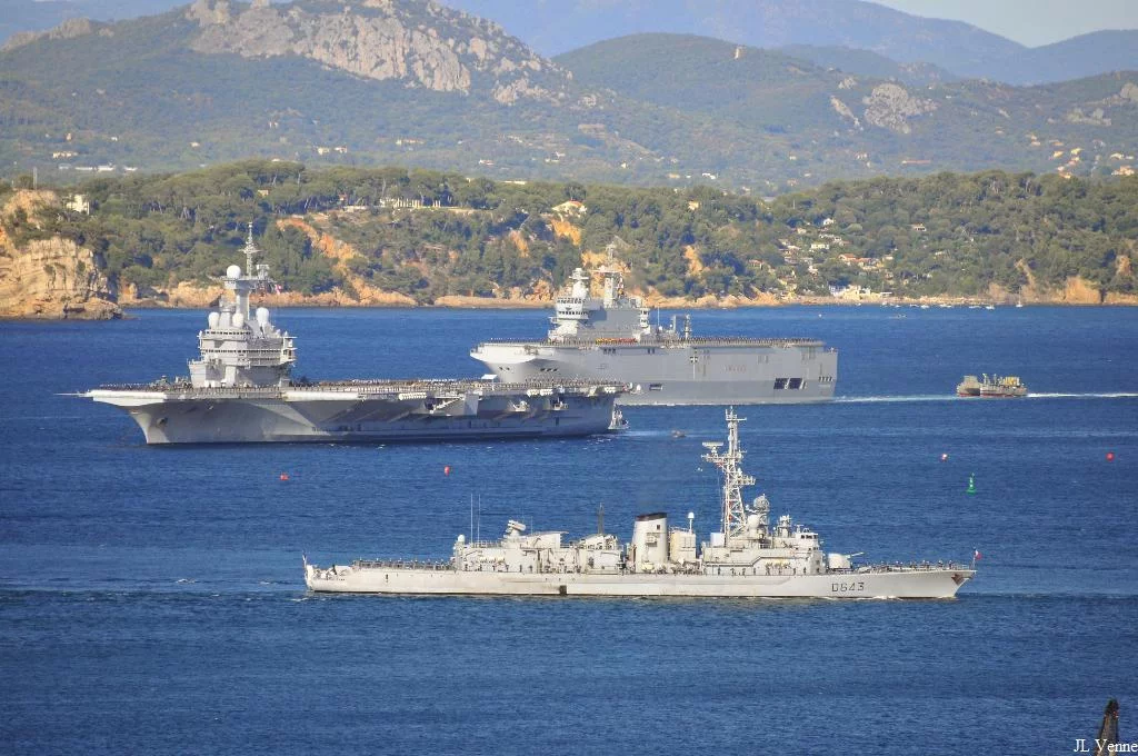 Voici des images de la grande répétition générale de la revue navale du 15 août qui s’est déroulée le 13 août devant les côtes varoises. Ont participé à ce défilé le porte-avions Charles de Gaulle, le bâtiment de projection et de commandement Tonnerre, le sous-marin nucléaire d’attaque Perle, les frégates de défense aérienne Forbin et Chevalier Paul, la frégate antiaérienne Jean Bart, la frégate anti-sous-marine Jean de Vienne, les frégates Aconit et Guépratte, l’aviso Commandant Birot, le pétrolier-ravitailleur Meuse, le bâtiment école algérien Soummam, la corvette marocaine Tariq ben Ziad et le patrouilleur tunisien La Galite.