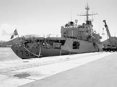 Si l’antenne de télévision satellite est une nouveauté à bord de la frégate, le changement de la parabole radar est une procédure qui se répète régulièrement dans le cadre de la maintenance habituelle de ce navire, où tout équipement a une durée d’utilisation réglementaire. La frégate Vendémiaire est un navire de surveillance et de représentation comparable à ceux qui naviguent dans la plupart des Dom-Tom. Sa mission principale est la surveillance de la ZEE (Zone économique exclusive) calédonienne mais aussi, dans le cadre de la coopération régionale, de certains pays voisins, comme le Vanuatu et Fidji. Cette surveillance concerne notamment les bateaux pirates qui y pêchent illégalement, mais aussi les navires qui dégazent en pleine mer, le trafic des bâtiments militaires d’autres nations, etc. Mais elle assure également une mission de représentation sur l’ensemble du Pacifique, soit en rendant visite à des pays de cette zone, soit en participant à des manœuvres internationales. Elle vient tout juste, par exemple, de rentrer d’un voyage au Kamtchaka. La pose de l’antenne et de la parabole sera terminée cet après-midi. Puis, la frégate Vendémiaire doit reprendre la mer dès le 15 février pour une nouvelle mission de surveillance de ZEE. Celle-ci la conduira notamment à Fidji, Wallis et Futuna et en Polynésie française.